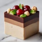 Remove from the refrigerator, slice into bars, and serve chilled or at room temperature for a decadent, no-bake treat.