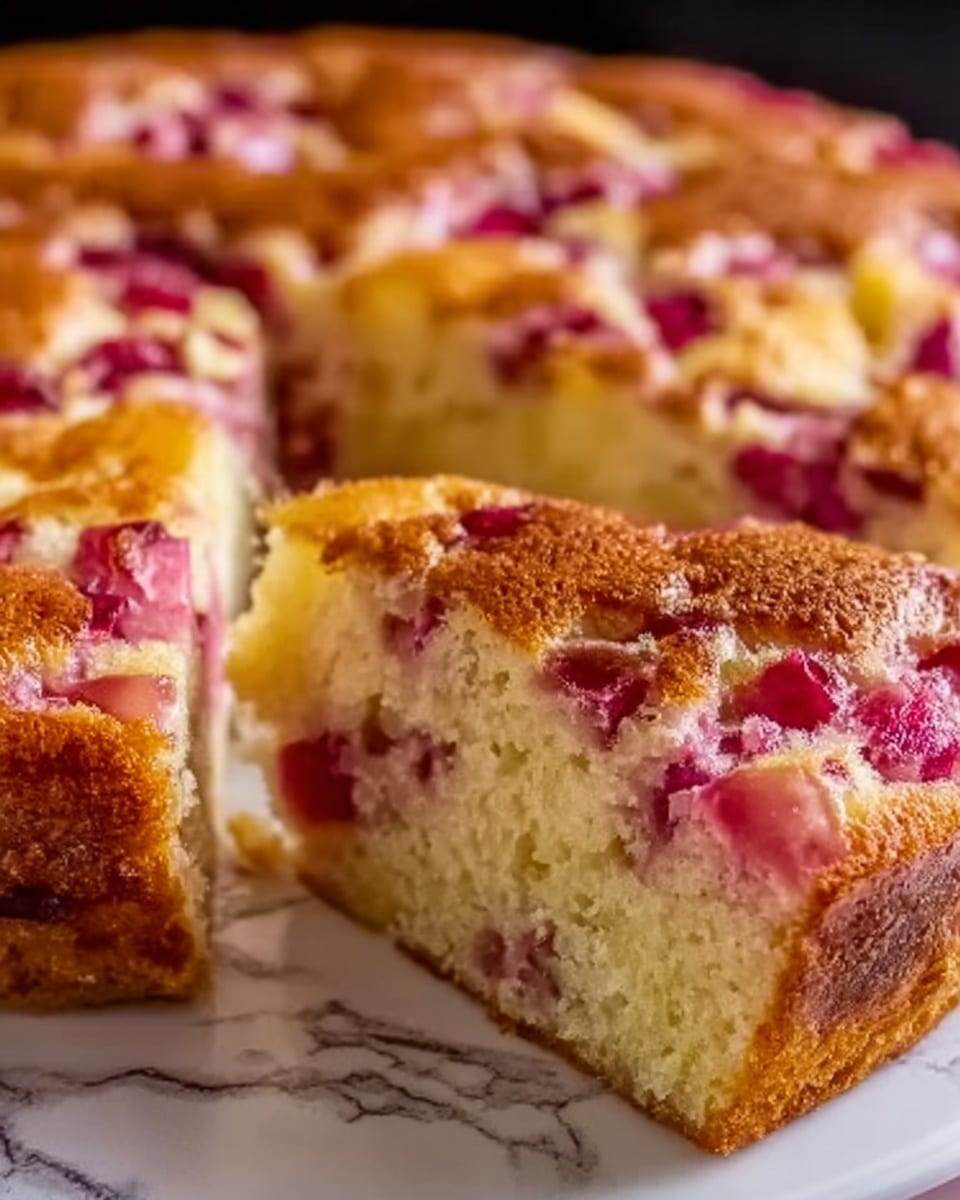 This cake pairs beautifully with a cup of freshly brewed coffee or tea, making it a wonderful afternoon treat. For an indulgent dessert option, serve alongside creamy vanilla ice cream or a vibrant fruit compote that complements the rhubarb’s tartness.