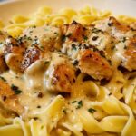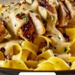 Garnish with chopped fresh parsley for a pop of color and a fresh counterpoint to the richness. Serve this One-Pan Creamy Garlic Butter Chicken with Egg Noodles Recipe immediately while warm and silky for the best experience.