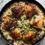 - Combine Chicken and Rice: Return the seared chicken thighs to the pot, nestling them into the rice mixture. Cover the pot with a tight-fitting lid, reduce heat to low, and let cook.