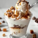 A creamy and indulgent Peanut Butter Cup Frozen Yogurt recipe featuring vanilla Greek yogurt blended with peanut butter and chopped peanut butter cups, perfect for a refreshing, protein-packed dessert that’s easy to make at home.