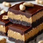 Place the assembled bars in the refrigerator for at least 4 hours or overnight to fully set. Once chilled, cut into squares and enjoy the delightful combination of peanut, chocolate, and cheesecake in every bite.