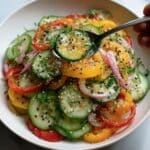 Making this Pickled Cucumber, Onion, and Bell Pepper Salad Recipe at home is a joyful experience that rewards you with a delightfully bright, crunchy, and flavorful dish every time. It’s versatile, easy to prepare, and a fantastic way to add a burst of garden-fresh taste to any meal. Once you try it, I’m sure you’ll keep coming back to this vibrant salad to brighten up your table and your taste buds!