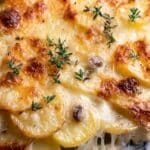 This Potato and Mushroom Gratin with Gorgonzola is a deliciously creamy and savory baked dish featuring thinly sliced potatoes layered with sautéed mushrooms, tangy Gorgonzola cheese, and aromatic thyme. Finished with a golden Parmesan crust, it’s perfect as a comforting side or hearty vegetarian main.