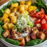 This Quick Caesar Chicken Bowl is a fresh, flavorful, and satisfying meal ready in just 30 minutes. Featuring crispy Parmesan-crusted chicken, homemade garlic croutons, and a rich, creamy Caesar dressing, it brings the classic Caesar salad to a hearty bowl perfect for lunch or dinner.