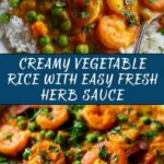 This delicious German-inspired Reis Mit Gemüse Frischkäse Sauce features fluffy rice combined with sautéed fresh vegetables and a creamy, tangy cream cheese sauce. A comforting, vibrant vegetarian dish perfect for a wholesome lunch or dinner, garnished with fresh herbs for added flavor and freshness.