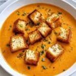 If you want to add a bit of texture, toss bread cubes with olive oil, garlic, and chopped basil, then bake at 400°F for about 7 minutes until crisp and golden. These homemade croutons add an exciting crunch that contrasts beautifully with the smooth soup.