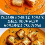 - Serve: Ladle the hot soup into bowls and top generously with the freshly baked basil garlic croutons. Enjoy your comforting roasted tomato basil soup!