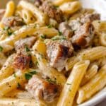 Sausage Alfredo Rigatoni is a rich and creamy Italian-American pasta dish featuring tender rigatoni tossed in a luscious homemade Alfredo sauce with savory Italian sausage. This comforting meal combines the bold flavors of browned sausage, garlic, and Parmesan cheese for a satisfying weeknight dinner that’s easy to prepare on the stovetop.