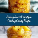 Savory Sweet Pineapple Cowboy Candy is a delightful combination of tangy, sweet, and spicy flavors preserved in a thick syrup. Made with pineapple chunks simmered in a mixture of apple cider vinegar, sugars, and warming spices, this candy is perfect for adding a zesty kick to cheeses, crackers, or grilled meats.