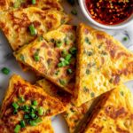 Once cooked, cut the pancakes into wedges and serve them hot. They’re fantastic on their own or paired with dipping sauces like soy sauce, black vinegar, or chili oil for an added kick of flavor.