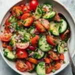 Shirazi Salad is a refreshing and tangy Persian salad made with fresh cucumbers, tomatoes, onions, and herbs, dressed in a lime and olive oil vinaigrette. Perfect as a light side dish or a healthy snack, this salad boasts vibrant flavors and is quick to prepare.