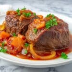 This dish pairs beautifully with rustic crusty bread that’s perfect for soaking up the luscious sauce. Alternatively, serve it over a bed of al dente pasta or creamy polenta to complement the Mediterranean flavors and make the meal more substantial. A simple green salad with a tangy vinaigrette keeps the meal light and refreshing.