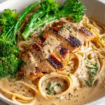 - Serve: Serve the Skinny Chicken Broccoli Alfredo immediately, garnished with additional Parmesan cheese if desired.