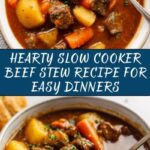 A hearty and comforting slow cooker beef stew made with tender beef chuck roast, fresh vegetables, and aromatic herbs, simmered to perfection for a rich and flavorful meal.