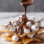 Once your s’mores nachos come out of the oven, drizzle any extra melted chocolate over the top for an eye-catching finish. Let it cool for a few minutes—you want it warm and gooey but not lava-hot—to ensure every bite is smooth and melty without burning your fingertips.