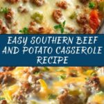 This Southern Five-Layer Beef Casserole is a hearty and comforting dish that layers seasoned ground beef with creamy mushroom soup, diced tomatoes with green chilies, and thinly sliced potatoes, all topped with melted cheddar cheese. Baked to perfection, it’s an ideal family meal that combines rich flavors and satisfying textures.
