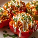 If you’re looking to impress guests or keep family dinners exciting, try serving the Spicy Buffalo Chicken Stuffed Peppers Recipe as an appetizer by making them in mini bell peppers. Alternatively, bake the filling separately and turn it into a buffalo chicken dip with melted cheese and sliced bell pepper scoops for dipping. Either way, the bold flavors always steal the show.