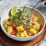 A vibrant and zesty Spicy Pineapple Slaw combining crunchy cabbage, sweet pineapple, and fiery chiles, tossed in a tangy lime-honey dressing. Perfect as a refreshing side dish or a topping for tacos and grilled meats, this slaw brings a perfect balance of sweetness, spice, and citrus brightness.