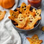 - Cut Spooky Shapes: Stack 2 to 3 tortillas and use Halloween-themed cookie cutters to cut out desired shapes. Press firmly to ensure clean edges. Carefully arrange the shapes in a single layer on the prepared baking sheets, making sure they don’t overlap for even baking.
