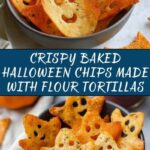 Create festive and crispy Halloween-themed baked chips using flour tortillas. These spooky-shaped snacks are lightly oiled and salted, baked to golden perfection, and perfect for party treats or a fun snack.