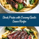 This Steak Pasta with Creamy Garlic Sauce is a quick and flavorful dish combining tender seared flat iron steak with al dente penne pasta, bathed in a rich and cheesy garlic cream sauce enriched with sun-dried tomatoes, fresh spinach, and roasted green chiles. Ready in just 25 minutes, it’s a perfect weeknight meal that delivers hearty satisfaction with a touch of elegance.