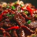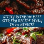 Sticky Rainbow Beef is a vibrant and flavorful stir-fry featuring tender beef strips tossed with colorful bell peppers, crisp broccoli, and sweet carrots in a glossy, sticky soy and honey sauce, enhanced with ginger, garlic, and a touch of chili. Ready in just 20 minutes, it’s a quick and delicious meal perfect for weeknight dinners, served over rice or noodles.