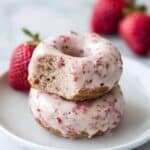 Delight in these moist and flavorful Strawberry Cake Donuts, baked to perfection with fresh strawberries and finished with a sweet powdered sugar glaze. This easy-to-make recipe offers a fruity twist on classic cake donuts, perfect for breakfast or a sweet snack.