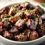 - Serve and Garnish: Garnish the steak bites with chopped green onions or sesame seeds if desired. Serve hot over rice, mashed potatoes, or your favorite roasted vegetables.