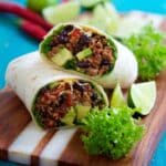 Try serving your burritos cut in half diagonally on a colorful platter with small bowls of salsa, guacamole, and sour cream for dipping. You can also turn this recipe into a burrito bowl by skipping the wrap and layering all the ingredients in a bowl for a deconstructed, fork-lifted experience. Perfect for meal prep or casual entertaining!