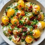 This Ultimate Loaded Potato Salad is a hearty and flavorful side dish perfect for picnics, barbecues, or casual meals. Combining tender baby potatoes with crispy bacon, sharp cheddar cheese, hard-boiled eggs, and a creamy, tangy dressing, this salad is a satisfying twist on a classic favorite that’s sure to impress any crowd.