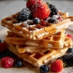 - Repeat Cooking: Continue cooking the remaining batter in batches. Set the cooked waffles aside and keep warm until all are ready.