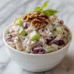 This Waldorf Chicken Salad is a fresh, crunchy, and creamy dish combining tender chicken, crunchy walnuts, crisp celery, sweet apples, and juicy grapes, all coated in a tangy mayonnaise and Greek yogurt dressing with a hint of lemon. Perfect for a light lunch or a refreshing summer meal.